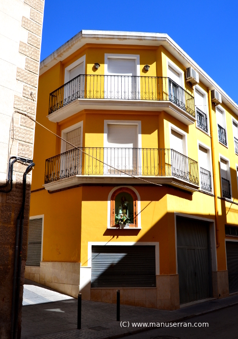 Sobre la fachada de un edificio que hace chaflán a las calles del Carmen y Mayor.