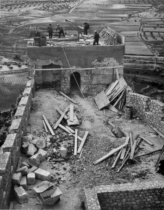 Por noticias del Archivo Municipal de Sax, sospechábamos del uso religioso de la citada torre almohade como capilla de San Jorge, tal como se desprende del siguiente acuerdo del año 1750, conservado en el libro de cabildos número 11 de Sax, en sus páginas 86-87: “…Del reconocimiento de los puestos fortificados en este Reyno y el de Murcia que de orden del Rey executó el coronel D. Estevan Panon, Ingeniero en Gefe, resulta que una de las torres del Castillo de esa villa, ay un retablo de San Jorge, y para su conservación unas tierras situadas al pie del Castillo, valuadas en ciento y cinquenta pesos, y que un vezino de esa villa llamado Joseph Estevan que fue nombrado por Teniente de Alcayde, se apropió de dichas tierras, que pertenecen al Rey, y las gozan sus hijos, por una Misa que hazen dezir cada Año; Y queriendo S.M. que las expresadas tierras se restituyan a su destino, y que yo providencié lo combeniente a su efecto, haciendo producir a los hijos, o herederos del referido Joseph Estevan los títulos de su pertenencia, para que tenga el debido cumplimiento la resolución de S.M. prevengo con esta fecha al Brigadier D. Pedro Corby, Gobernador de Xixona, que por sí, o persona de su satisfacción que nombrare haga reconozer las expresadas tierras con asistencia de la Justicia, escribano de esa Villa, justificando quales sean su valor, y con que título las poseyó y han posehido el citado Joseph Estevan, sus hijos y herederos, y el producto de ellas, por quantos años, y dejandolas amojonadas con sus hitas me remita testimonio de lo que resultare de dichas diligencias, quedando las originales en el Archivo de esa Villa para que no se extravíen. De que participo a Ums. Para su inteligencia y puntual cumplimiento. Dios que a Vms. Mas. As. Real de Valencia, 4 de septiembre de 1750…”.