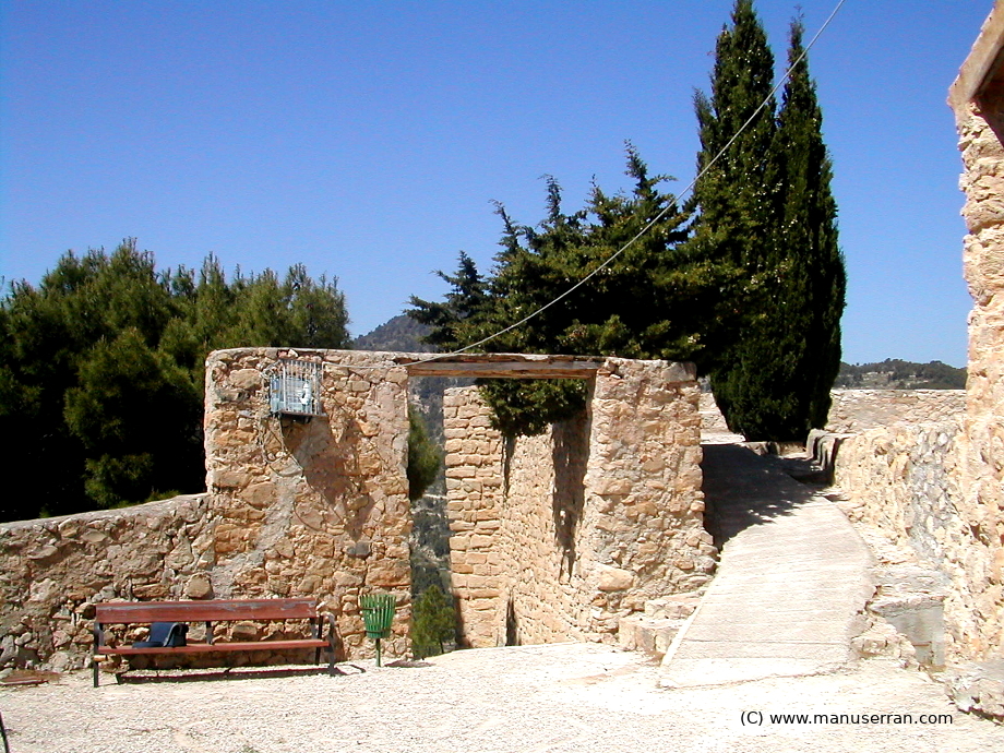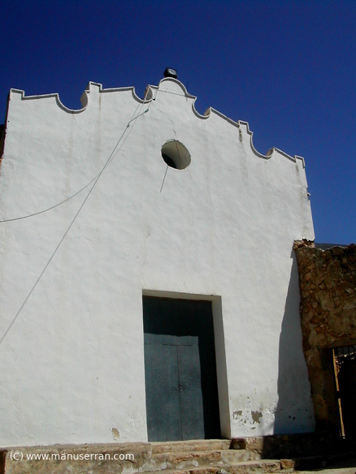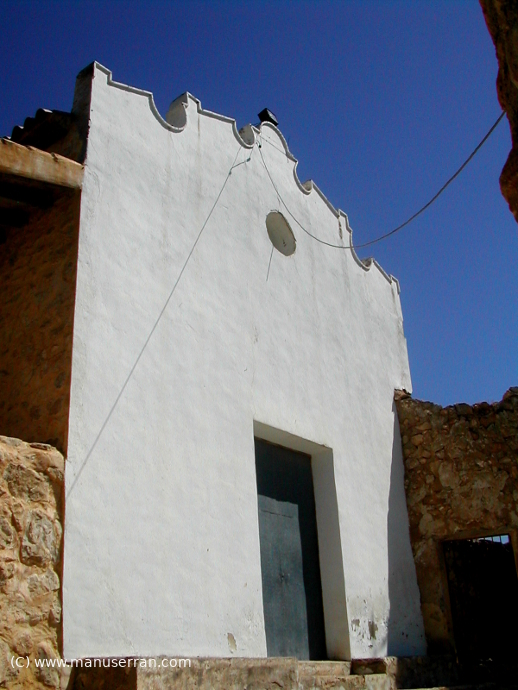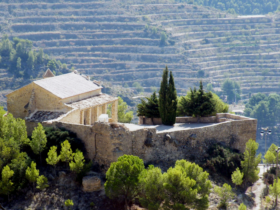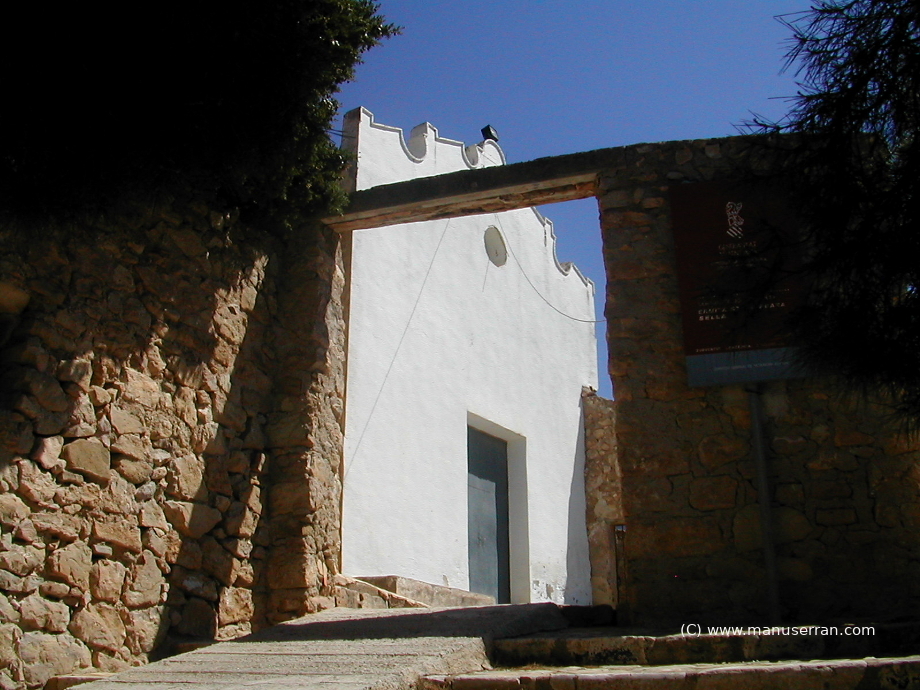 «…Ermita situada entre las ruinas de un antiguo castillo. Se llega a ella desde las afueras de la población por un camino en zig-zag salpicado con los casalicios de un Vía Crucis. No se sabe quien la construyó. Por sus características, probablemente entre los siglos XVII y XVIII.