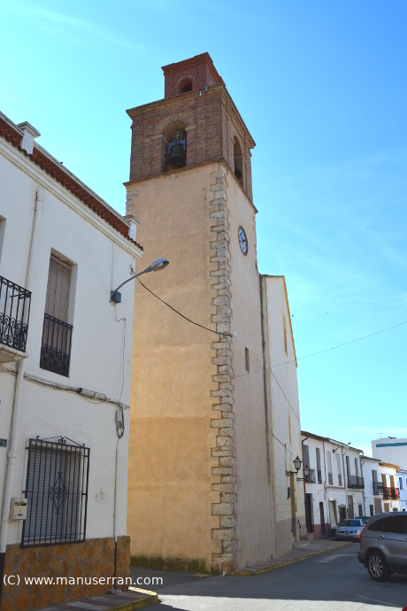 «…Templo del siglo XVIII de planta rectangular de cruz latina con dos tramos de capillas laterales entre contrafuertes. La nave central se cubre con bóveda de cañón y lunetos sobre arcos fajones, apareciendo en el crucero una bóveda vaída que se repite, aunque con menores dimensiones, en el presbiterio. En el interior aparecen dos órdenes de pilastras compuesto para la nave mayor, que recoge un entablamento que recorre todo el espacio interior, y toscano en las capillas laterales. Los lunetos de la nave son ciegos, apareciendo un único hueco rectangular de iluminación en el imafronte. Los elementos ornamentales interiores se resuelven en códigos clásicos, utilizando para ello superficies blancas y filetes dorados. En el exterior se plantea una fachada resuelta de forma austera y desornamentada, con remate en forma de frontón triangular que anuncia la cubierta a dos aguas de teja y una serie de huecos superpuestos que señalan el acceso. Situada en un lateral aparece una torre de planta cuadrada y dos cuerpos en que se destaca volumétricamente del conjunto…». (5)
