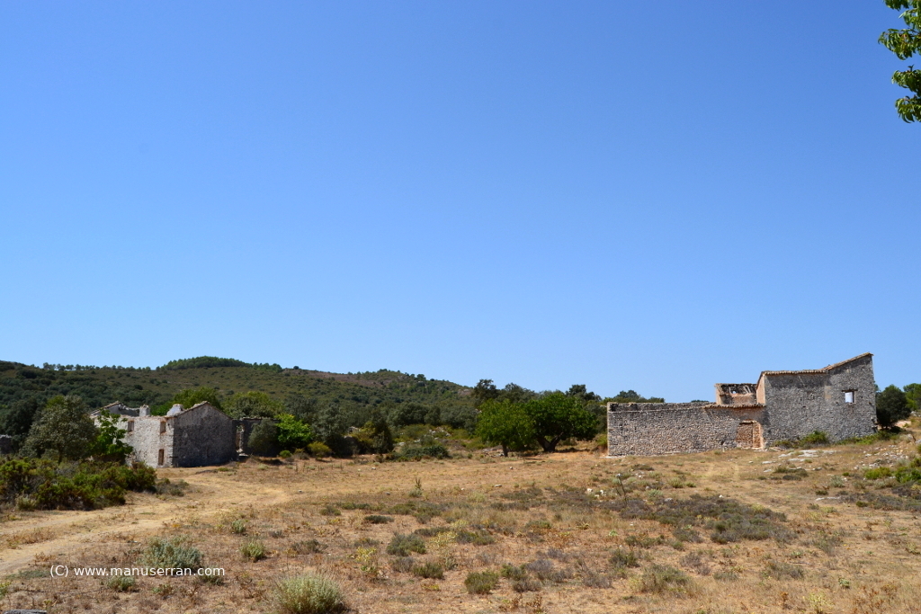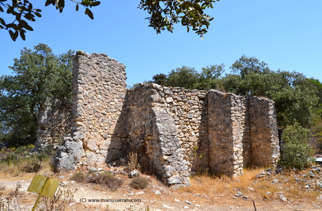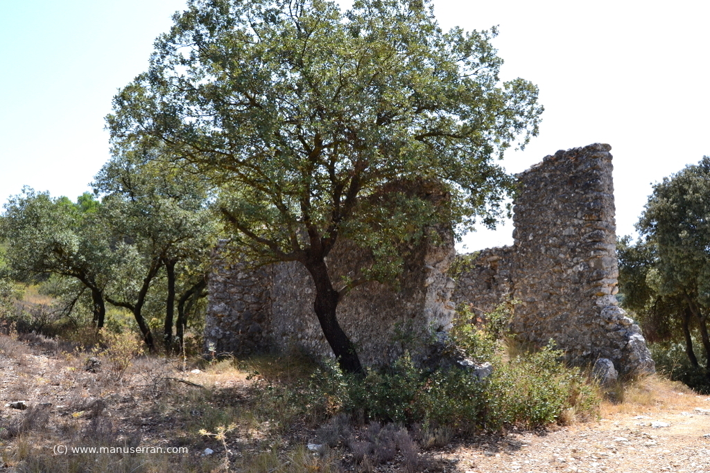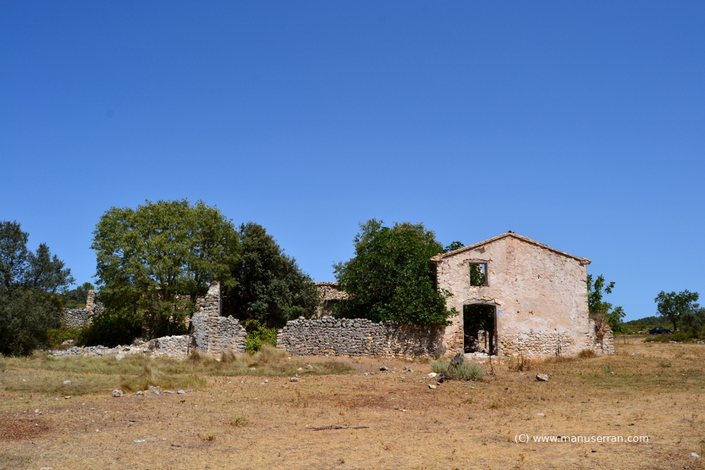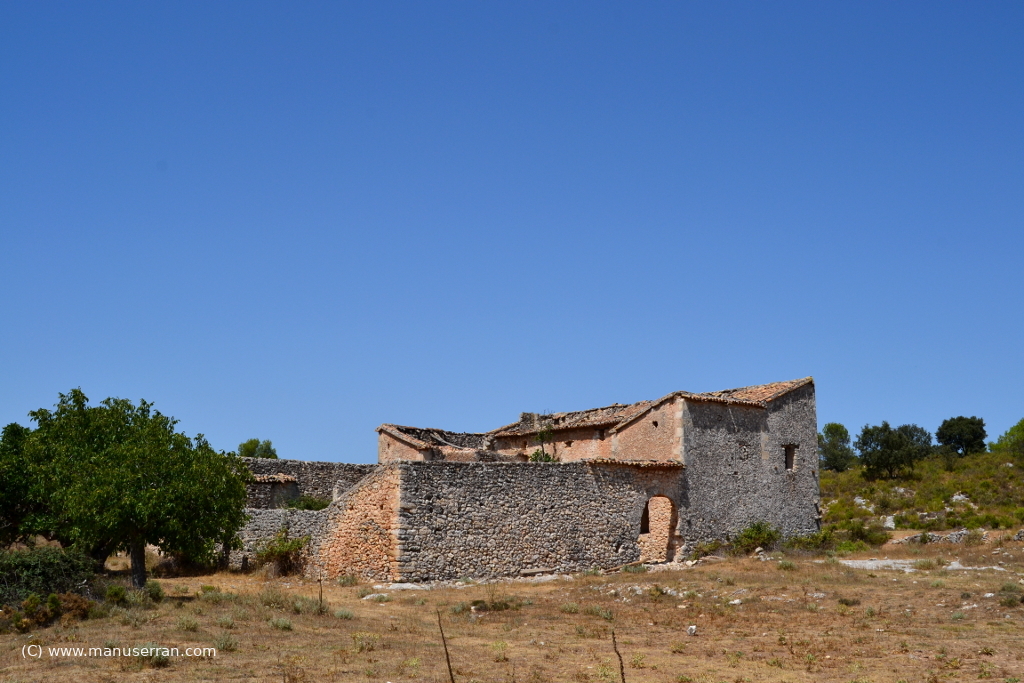 Continuamos con la descripción del lugar, extraído de la web: http://www.auntirdepedra.com/ “…Las masías son los restos de un antigua aldea y masía del término de Tollos (el Comtat), antiguo lugar de moriscos donde habitaban trece familias en 1602, anexado en 1535 en Alcalá de la Jovada y adscrito a la parroquia de Benimassot, de los marqueses de Guadalest, y del que todavía hay ruinas y los restos de una posible mezquita. Nos encontramos ante dos masías con aljibe, molino y una capilla derruida bajo la advocación de San Luis Beltrán; unas construcciones situadas en medio de un pequeño y frondoso valle donde los colonos producían trigo, cebada, vino y lana. El último habitante de las masías fue el tío Sebastián, un hombre que según la leyenda atormentó a su familia hasta el punto de provocar la muerte de la mujer, la huida del hijo y el suicidio de éste, que se colgó de una viga de la casa…”.