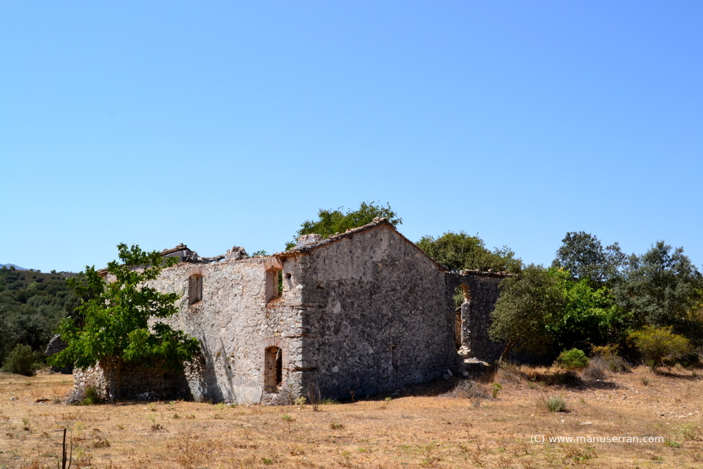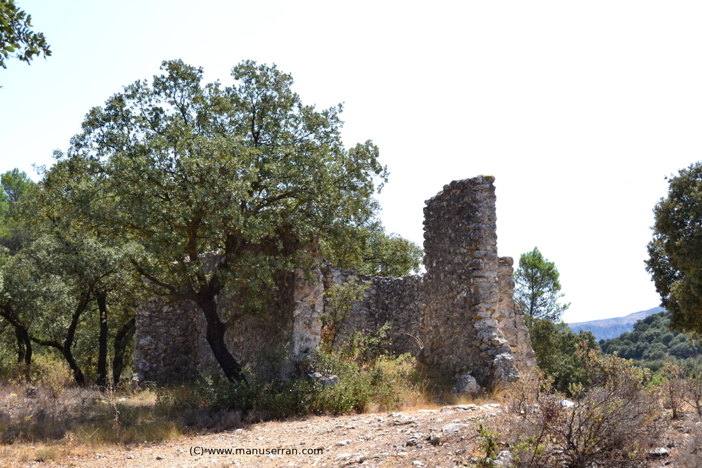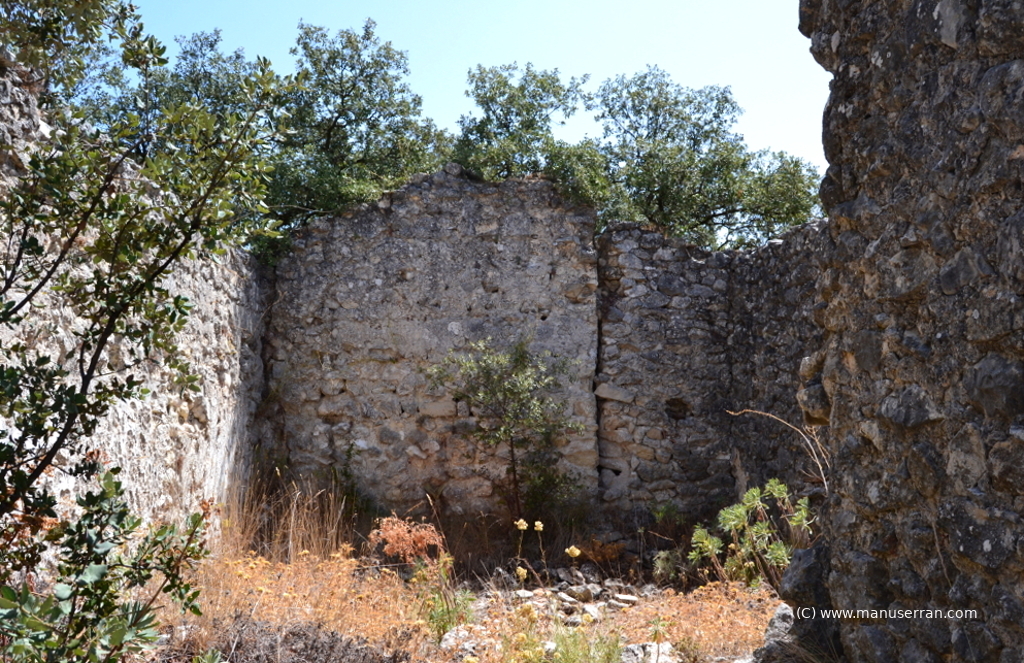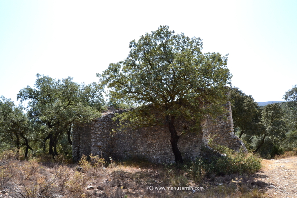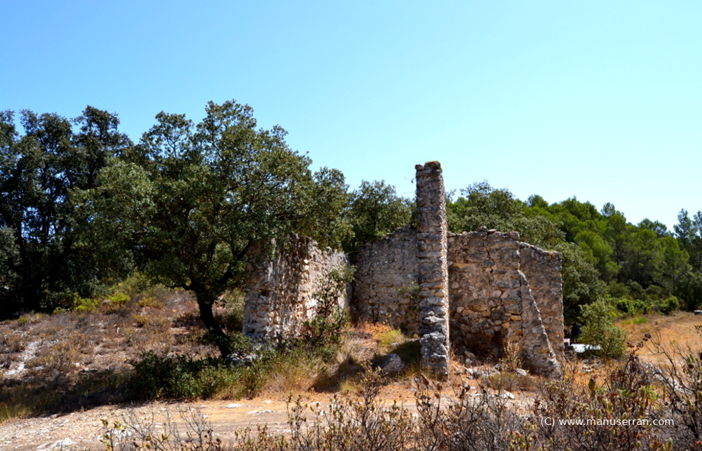 Continuamos con la descripción del lugar, extraído de la web: http://www.auntirdepedra.com/ “…Las masías son los restos de un antigua aldea y masía del término de Tollos (el Comtat), antiguo lugar de moriscos donde habitaban trece familias en 1602, anexado en 1535 en Alcalá de la Jovada y adscrito a la parroquia de Benimassot, de los marqueses de Guadalest, y del que todavía hay ruinas y los restos de una posible mezquita. Nos encontramos ante dos masías con aljibe, molino y una capilla derruida bajo la advocación de San Luis Beltrán; unas construcciones situadas en medio de un pequeño y frondoso valle donde los colonos producían trigo, cebada, vino y lana. El último habitante de las masías fue el tío Sebastián, un hombre que según la leyenda atormentó a su familia hasta el punto de provocar la muerte de la mujer, la huida del hijo y el suicidio de éste, que se colgó de una viga de la casa…”.