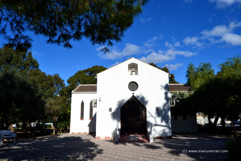 El edificio de esta ermita, construida en el último tercio del siglo XX, cuando se realizó la urbanización, es análogo al de la ermita de la Virgen de la Alegría en la urbanización Mil Palmeras de Pilar de la Horadada, poniendo de manifiesto que ambas urbanizaciones fueron realizadas por la misma empresa.