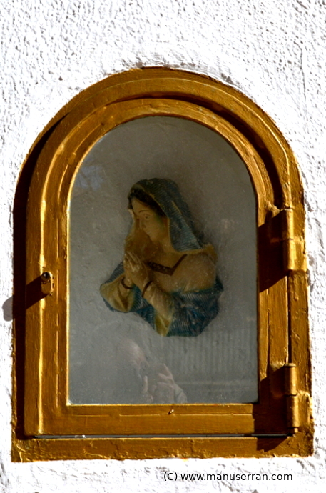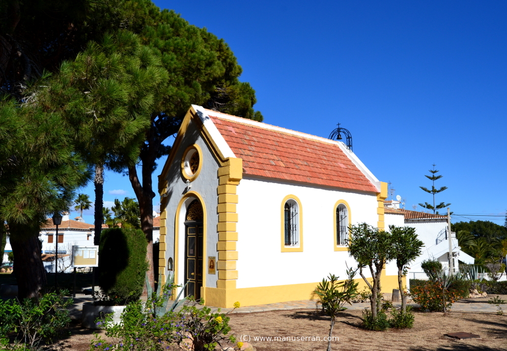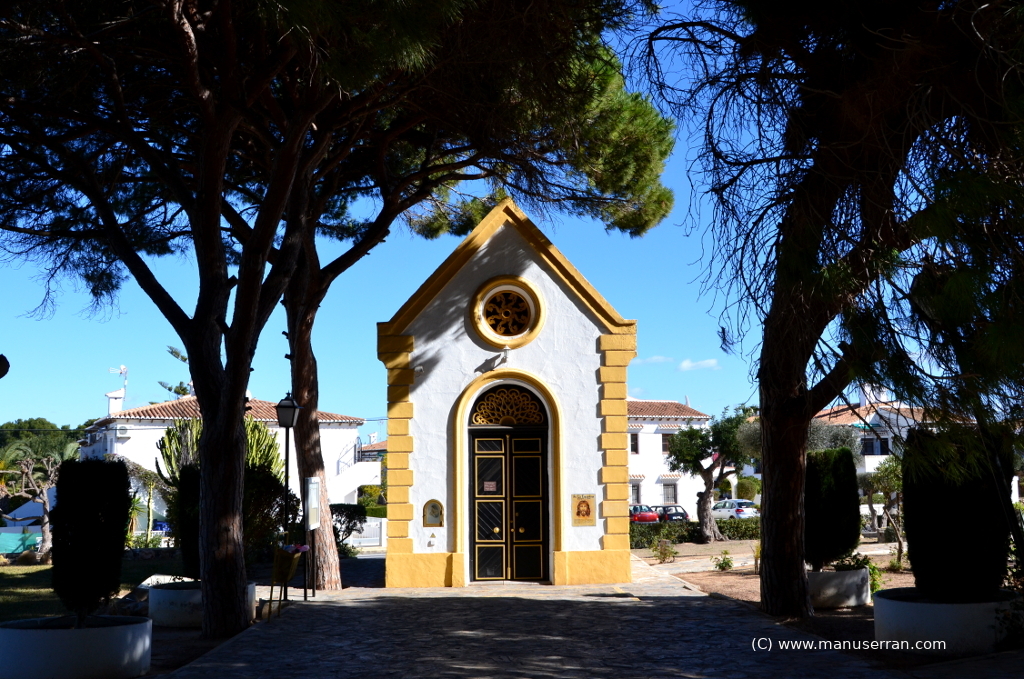 En la puerta de acceso a la capilla un rótulo señala Esta iglesia está dedicada a todas las religiones, lo que da idea del carácter plurinacional de los residentes en el entorno.