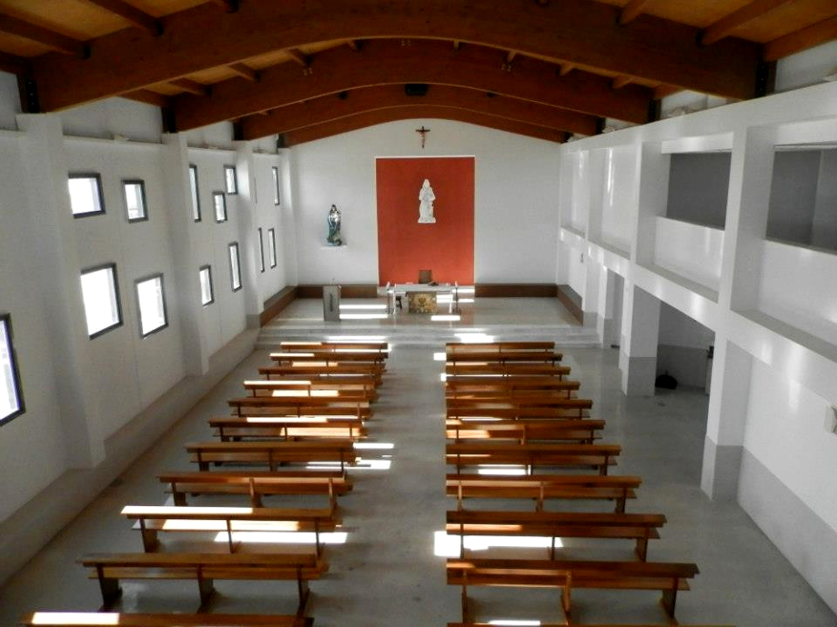 Las estancias del piso superior formadas por un salón multiusos y el coro son muy sencillas, estando todo su entorno sin cerramiento alguno, de modo que los amplios ventanales de que dispone el edificio se puedan abrir en época estival.