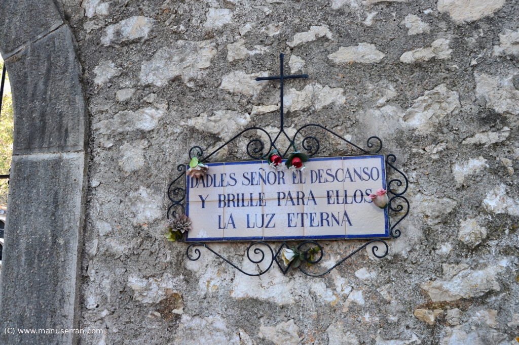 El recinto sepulcral, rodeado de altos cerros de abundante arbolado confieren al lugar un aspecto lúgubre en el que destaca la fachada de mampostería vista, con acceso en arco de medio. El interior, muy sobrio, de planta rectangular con muros que albergan numerosos nichos, únicamente dispone de una pequeña cruz rodeada de algunos cipreses.