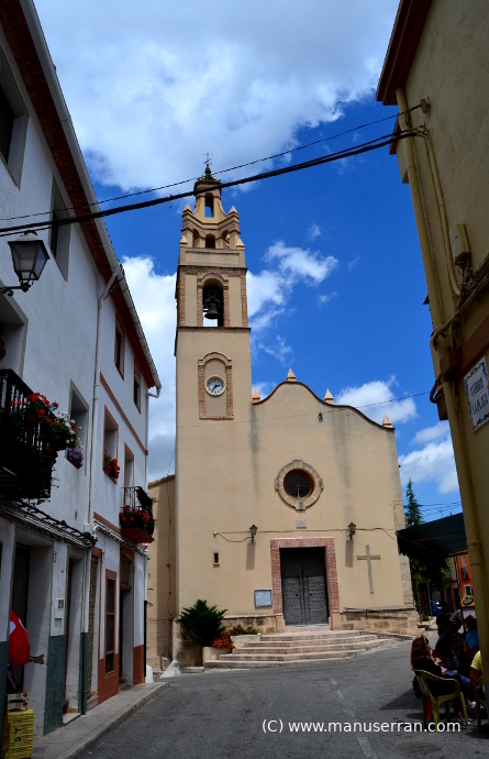 Como en otros lugares de moriscos de los Valles de Pego, suponemos que, después de la ordenación parroquial de 1535, se construiría inicialmente un templo sencillo sobre la original mezquita musulmana […] tan solo con la repoblación del siglo XVII se edificaría -muy posiblemente en el mismo emplazamiento- una iglesia, de planta rectangular y nave con bóveda de cañón y capillas laterales. El crucero y el altar mayor se construyeron en 1700…». (5)