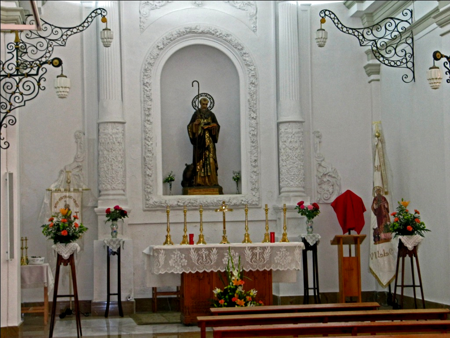 «…Ermita urbana sin culto, situada en el centro de la ciudad. El primer documento en que se menciona esta ermita, data de 1575 (1). “…Las ermitas son: Nuestra Señora de las Virtudes, San Juan, San Benito, San Bernabé, San Sebastián, San Cristóbal y San Antón…”.