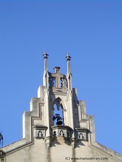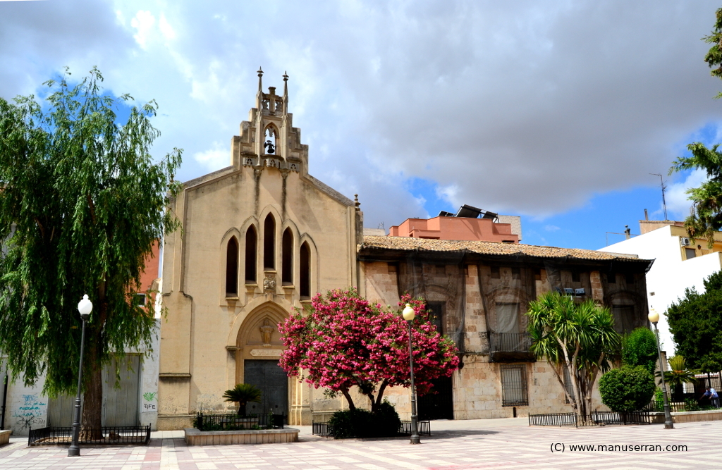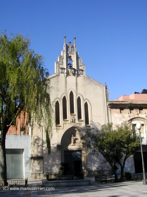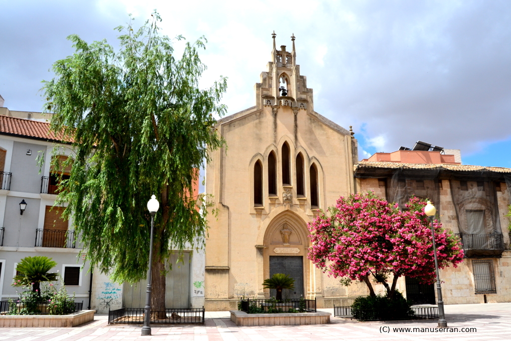 Adosada en un lateral del antiguo palacio de la Familia Mergelina, se construyó en 1910 una capilla de grandes dimensiones, estilo neoclásico, nave única y capillas laterales entre los contrafuertes. Ambos edificios se encuentran situados en la plaza de las Malvas.